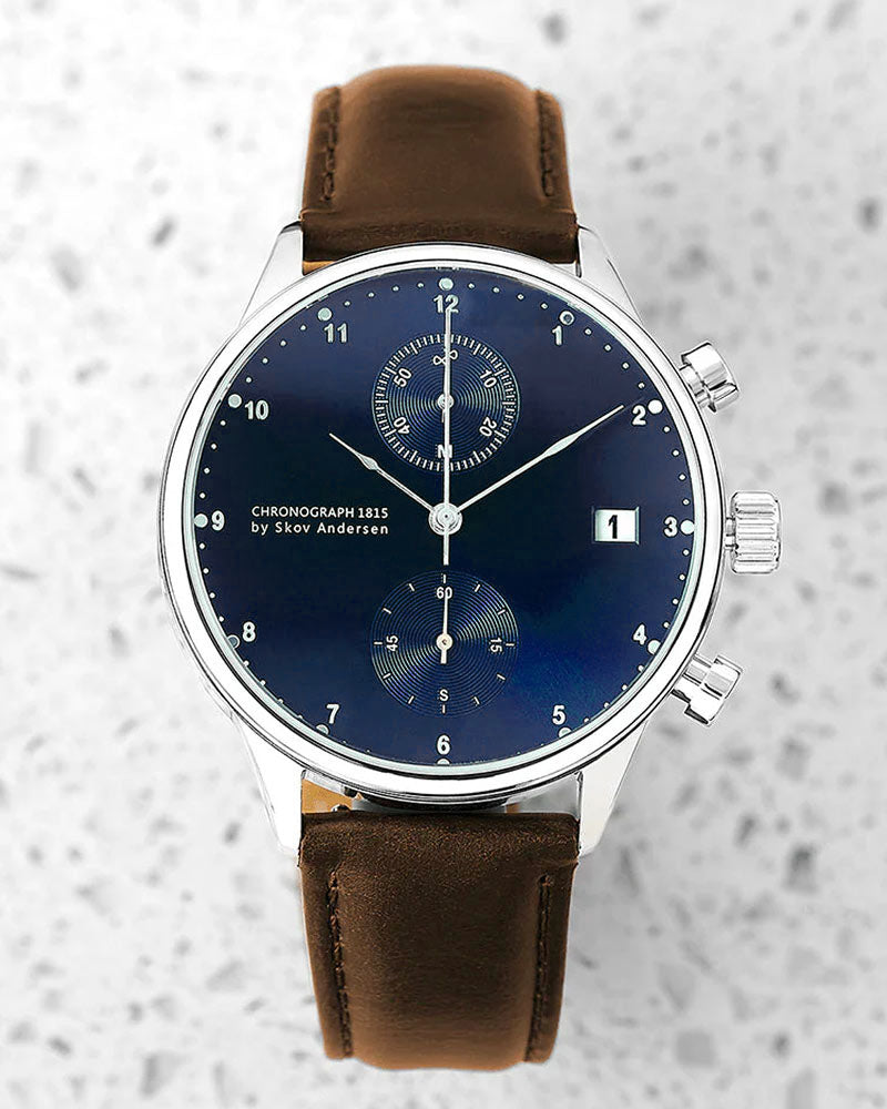 AV86 (formerly About Vintage) watches are designed in Denmark by Skov Anderson with the goal to create watches with contemporary simplicity and balance as key design elements, combined with classic vintage detailing. AV86 likes to name their watches with a reference to historical and memorable moments in horology. 1815 was an important year – it was the year the chronograph technique was invented. The dial of the 1815 is designed with numbers and markers to make each timing (and reset) spot on accurate.