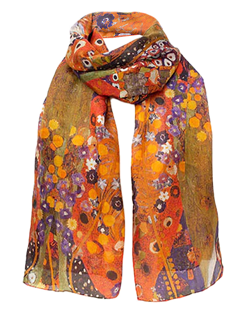 The painting has had a colorful history. It was originally commissioned for Jenny Steiner, the daughter of a wealthy industrialist, and after the death of her husband Gebrüder Steiner, was herself the director of a silk manufacturing company. Under the Anschluss of 1938 and being of Jewish heritage, her family's factories were expropriated by the Nazis and her extensive art collection, which included many works by Klimt including Wasserschlangen II, was stolen and auctioned in Vienna beginning in 1940. Steiner escaped with many of her family members to Portugal, then Brazil and finally to the USA. In 2013 the painting was one of the works at the centre of The Bouvier affair, when it was sold, potentially fraudulently, by the Swiss art dealer Yves Bouvier to the Russian billionaire Dmitry Rybolovlev for $183.3 million. 100% Habotai Silk. Hand rolled hems. Dimensions: 70” x 20.5” (180cm x 52cm).