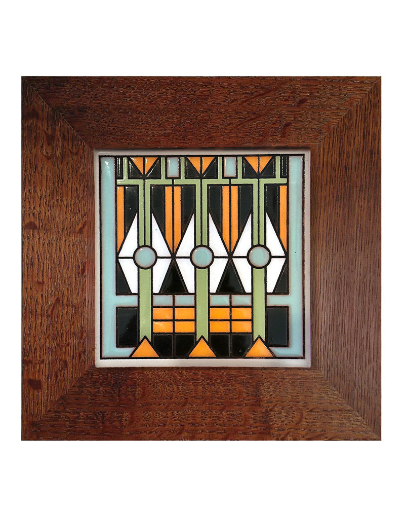 The hand glazed Trinity Ceramic Tile is a unique work of art, with glaze variations that add to the distinctive beauty of each piece. Each tile is framed in a hand made quarter-sawn Oak Park frame with signature stain. Please note each frame will have a distinctive wood grain. The frame comes ready to hang with a keyhole notch. Due to the hand painted nature of these tiles, no two are exactly alike and variations are expected. Tile dimensions: 6" x 6". Framed dimensions: 9.5” x 9.5”.