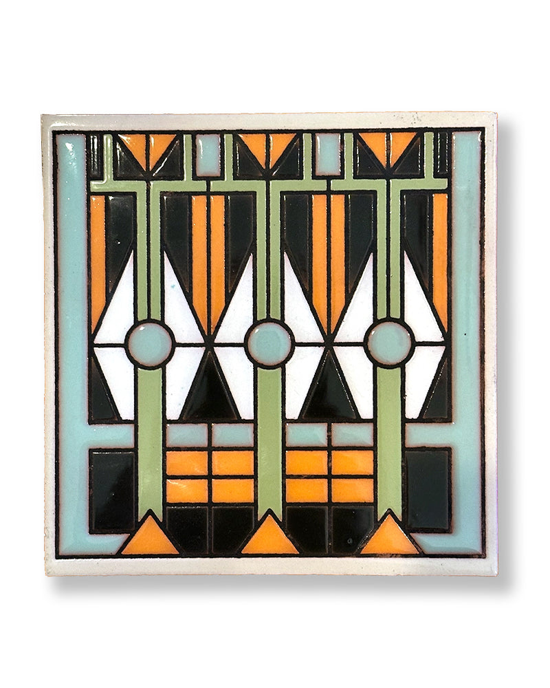 This art tile features Arizona Artist Janel Garza's work translated to ceramic tile by Carly Quinn. Janel Garza’s work has been heavily influenced by the Sonoran desert, a passion for medicinal plant studies, and the clean, orderly shapes found in modernist architecture. In her work, you’ll find an abstract sentiment with a sense of balance, harmony, and interconnectedness. Carly Quinn founded her studio in 2011 with the idea of bringing life to an age old art form known as Cuerda Seca. Designed, glazed and fired at her studio in Tucson, AZ. Carly Quinn Designs is one of a handful of studios across the globe that creates hand glazed tiles using old world techniques.