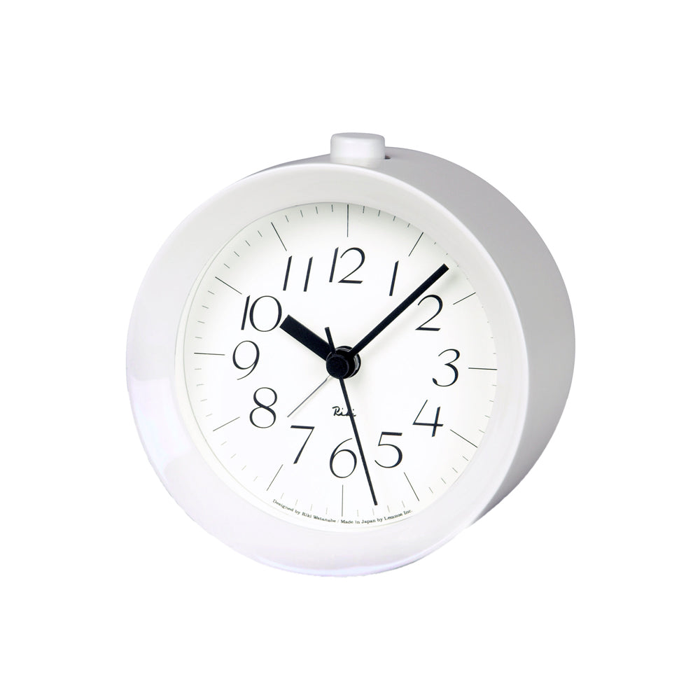 The Lemnos Riki Alarm Clock is a quality and convenient companion for the bedside with a traditional built-in light bulb night light. The alarm sound begins with a gentle continuous beep, slowly ascending in volume. Handmade in Japan with a solid beech wood case and glass face, it has a silent clock hand sweeping movement. It has been selected by The New York Times Wirecutter since 2020 as one of the best alarm clocks on the market. Riki Watanabe (1911 - 2013) was a pioneer of modern Japanese design, receiving many awards including the Milan Triennale Exhibition Gold Award, the Mainichi Design Award, and the Japanese Medal of Honor with purple ribbon awarded by the Government of Japan. Available in Natural, Brown, White, and Gray. Dimensions: 4.3" x 4.5". Runs on AA Batteries (included).