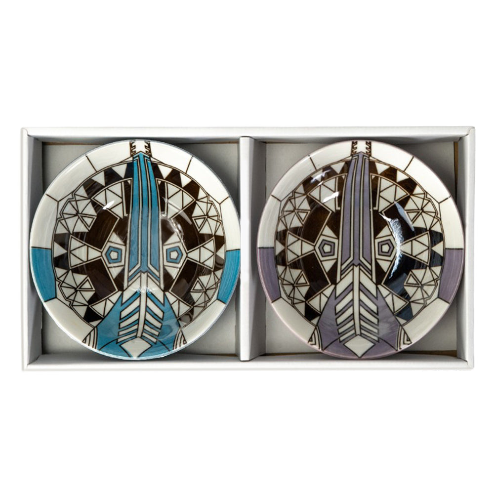The intricate Frank Lloyd Wright Imperial Peacock Ceramic Bowl design is adapted from a peacock motif rug in the Imperial Hotel in Tokyo (1913-1922, demolished 1968), which depicts a geometric interpretation of the peacock, a motif that was repeated as a mural in "Peacock Alley", the hotel's lavish main lobby. These Frank Lloyd Wright bowls are officially licensed by the Frank Lloyd Wright Foundation. Dimensions: 6”D X 2.75"H. Microwave and dishwasher safe. Made in Japan.